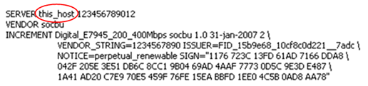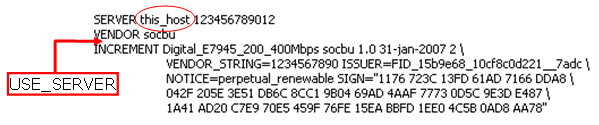 The server .lic license file must provide the server hostname and the correct vendor daemon ("socbu").