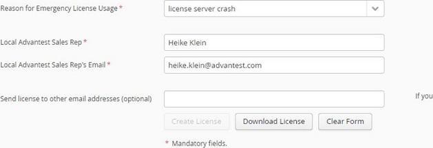 The emergency license request is sent to Advantest.