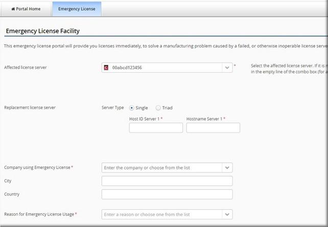 Requesting emergency license requires you to complete a short web-based form, supplying some basic information about the affected license servers, host system names, and some contact information.