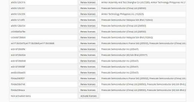 Note: The Advanced Renewal button expands the table showing the licenses.