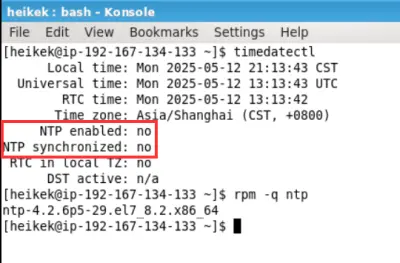 In the screenshot above the system is not configured for time synchronization and ntp is disabled.