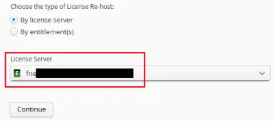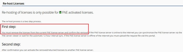 - Then select Re-host Licenses, the first step of rehosting is always removing the licenses from the server first. Which will be used to remove the bridging license, and the second step will not be executed.